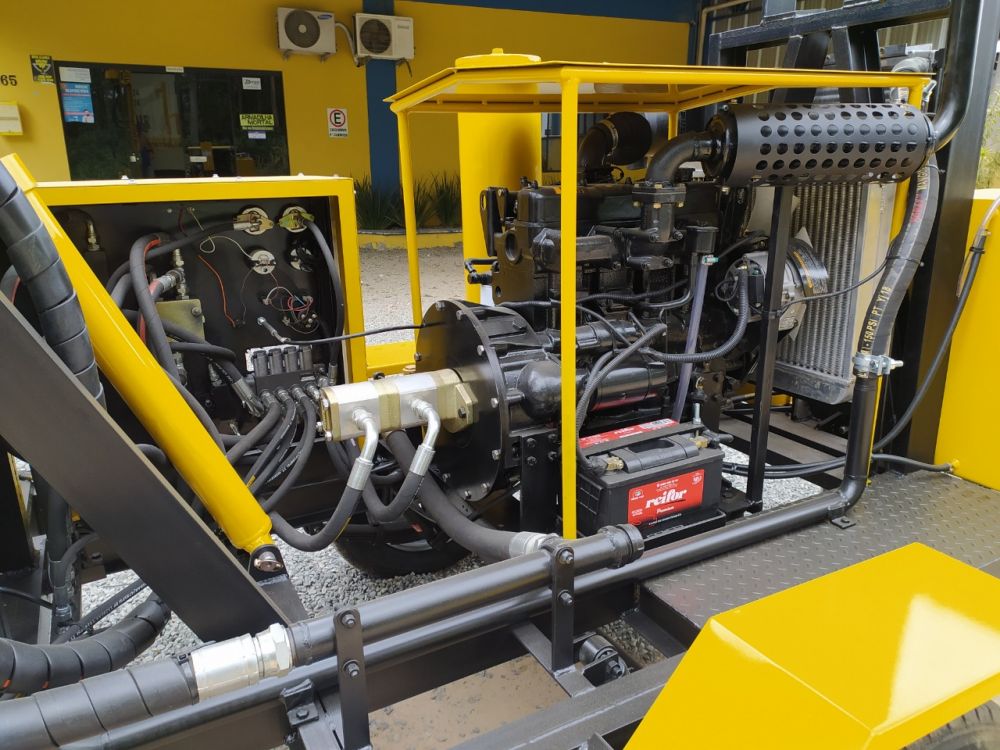 * Reservatório de óleo diesel de 120 litros e óleo Hidráulico W68 de 120 Litros no reservatório e 145 litros no total da linha.
