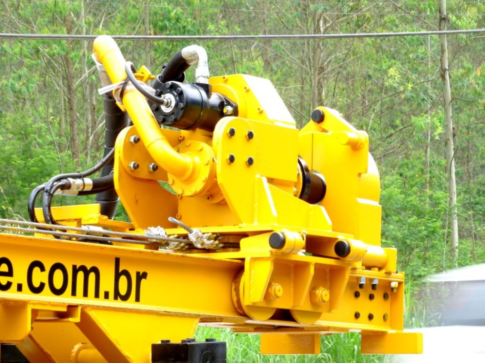 * “Carrinho acionado por cilindro hidráulico de 2.600 kgf de Avanço (Pull/Down) e tração retátil de 5.200 kgf (Pull/Back) auxiliado por sistema duplo de cabos ½” (sobe e desce).