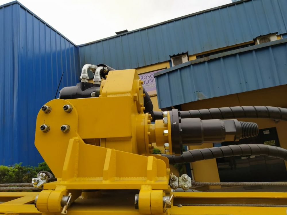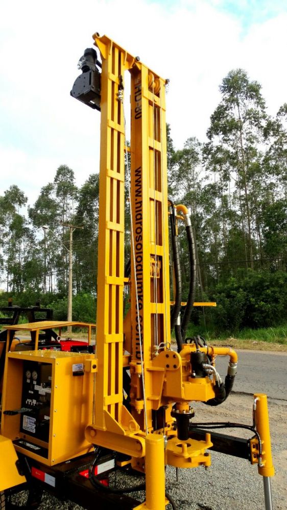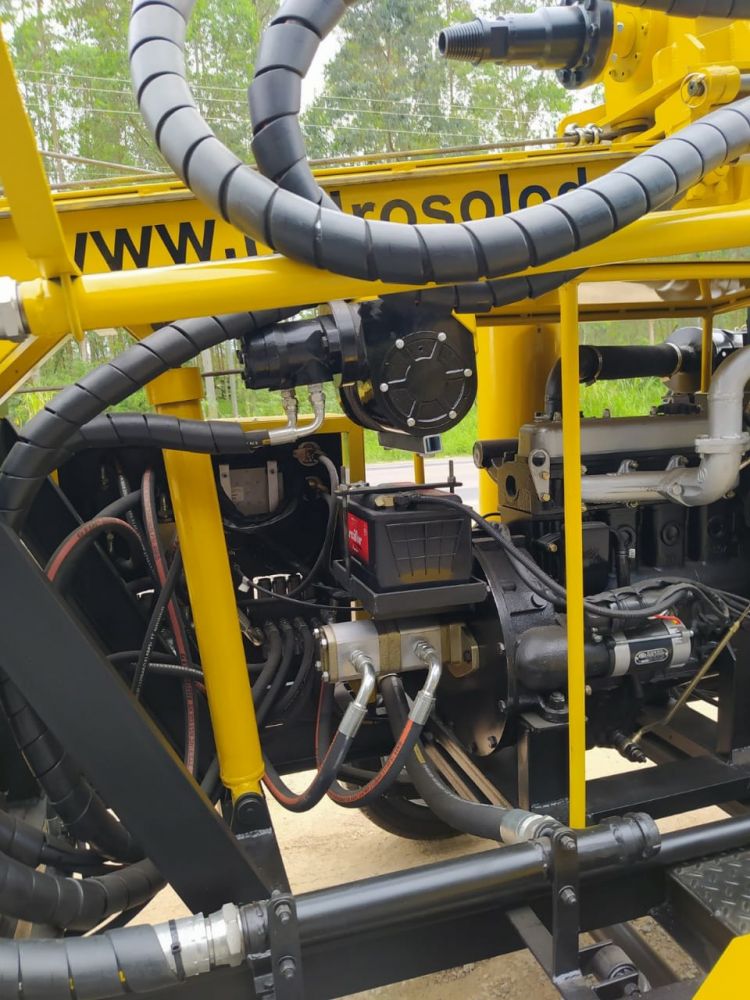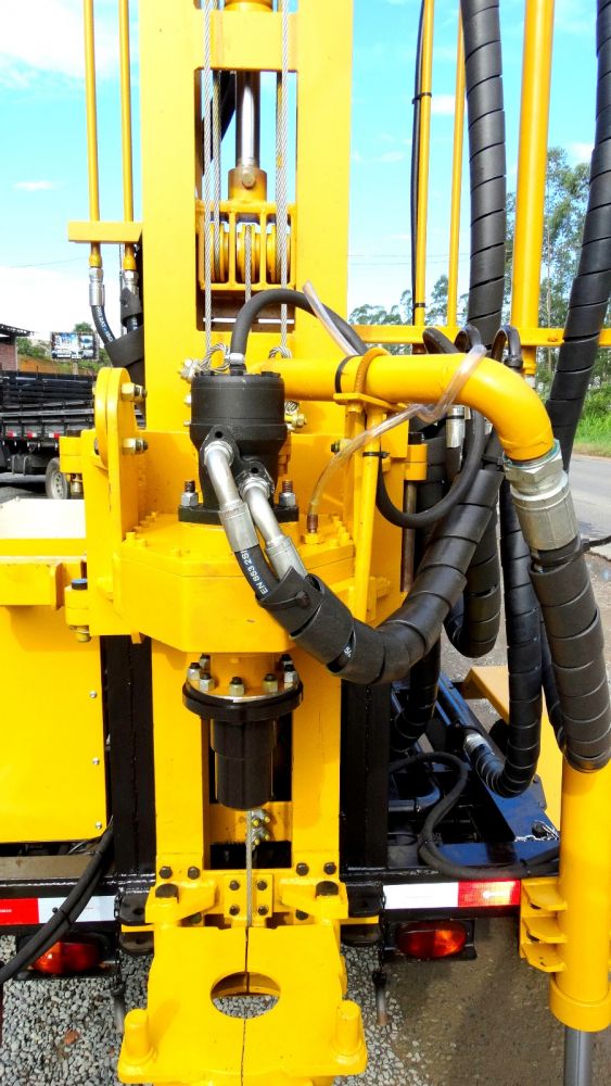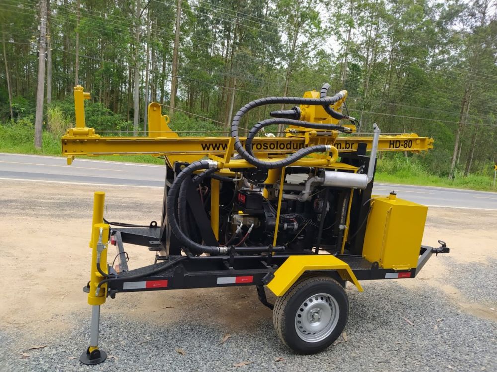 OBSERVAÇÃO IMPORTANTE: Este equipamento possui a mesma configuração de trabalho e capacidade de perfuração da HD-80, porém ela acompanha uma Sub-torre articulada lateralmente de mais 3m com guincho de 2.500 Kgf, que propicia o trabalho com instalação de bombas , com capacidade de manejo de tubos edutores de até 6m de comprimento e 3"de diâmetro, sendo assim utilizado como torre de manutenção.