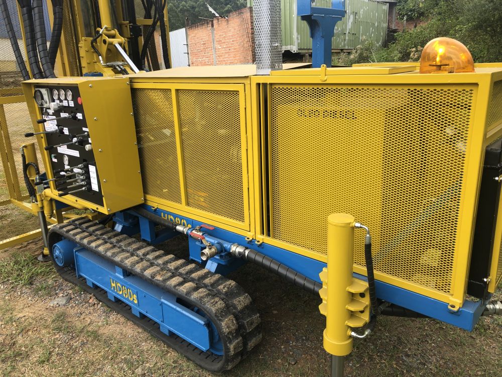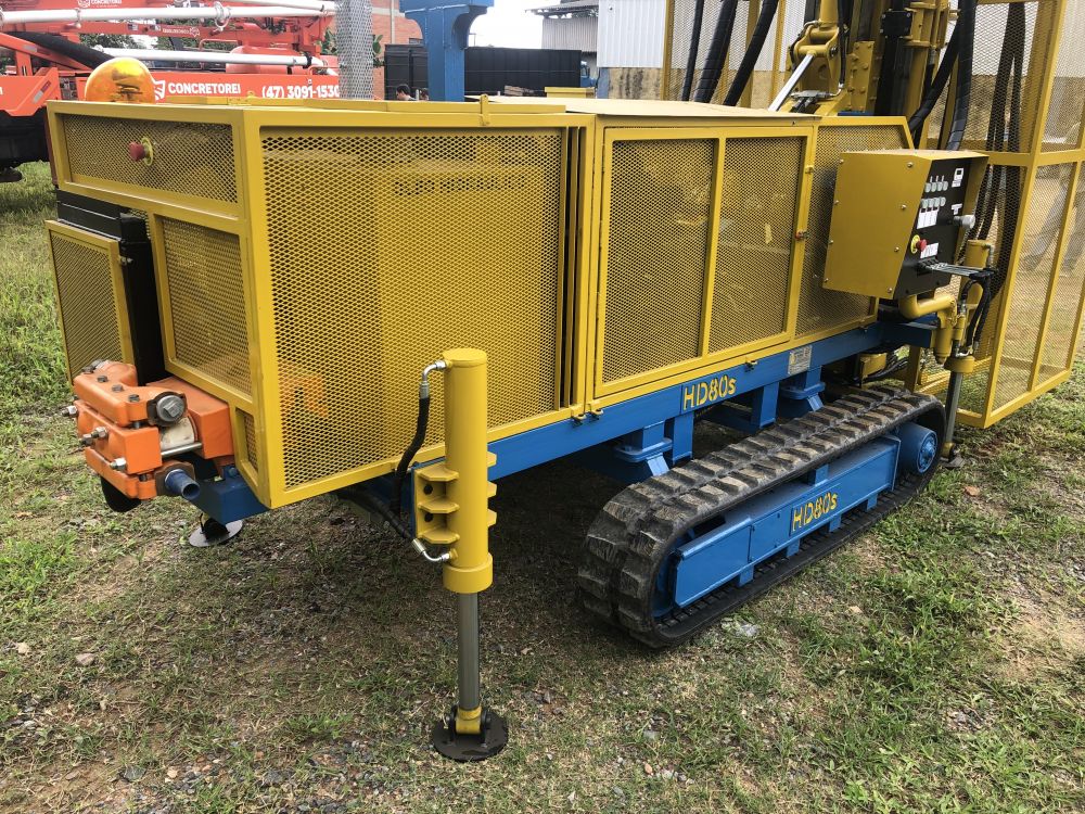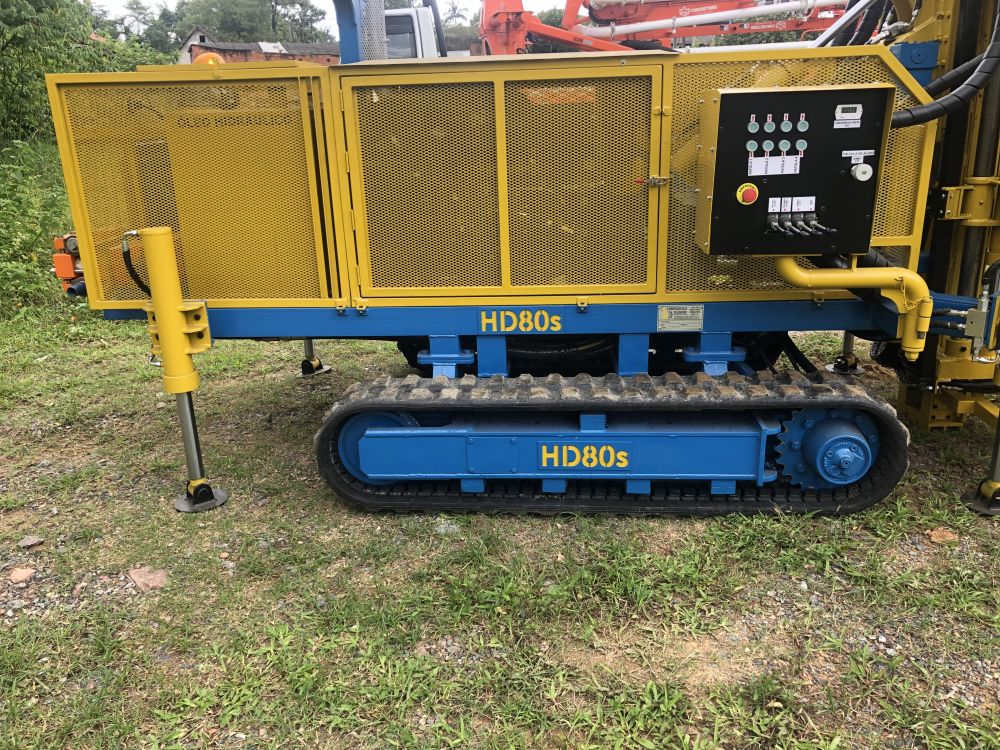 Sonda HD-80s, (PAT. REQ. Patente Requerida) trata-se de uma Sonda Rotativa com recuperação de testemunho e circulação de Fluidos (Wireline/ Coroa Diamantada) , Standard Penetration Test (SPT) hidráulica, perfuração a trado oco ou helicoidal, Direct Push, dentro da NBR 15.492 e parâmetros técnicos internacionais, capaz de executar diversos tipos de sondagem com um único equipamento, com autonomia de deslocamento por esteiras de borracha e acionamento manual ou wireless (Controle remoto) para simples deslocamento (ou podendo operar com todas as funções hidráulicas da sonda por Radio Controle, neste caso deve-se cotar separadamente)