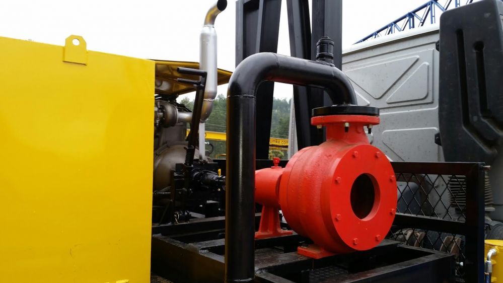· * Bomba de lama com acionamento por acoplamento direto no motor diesel 4 cilindros (Bomba Centrífuga de Rotor aberto, entrada de 5” e saída em 3”)